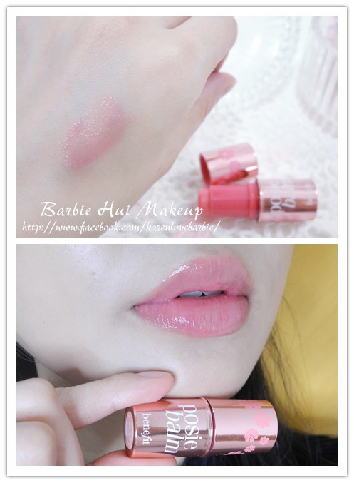 手上這支是之前Christmas set中的迷你版 (HK$180不是mini的) ,它蘊含芒果油和玻尿酸,可以呵護乾燥唇部,令雙唇保持水潤柔嫩。香檳粉紅的包裝內裡的是 posiebalm 花漾色調,柔美的感覺很討人喜愛呢 ♥